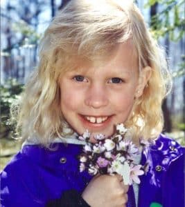 Eva Lawrenz with wildflowers she picked in the woods on her family’s property. Submitted photo