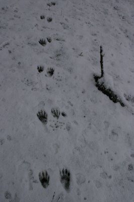 Members of the feline family (bobcat or domestic cats), have retractable toenails so you don’t see them in the tracks. Bobcat are here in Door County, but quite secretive and their tracks are hard to find. |